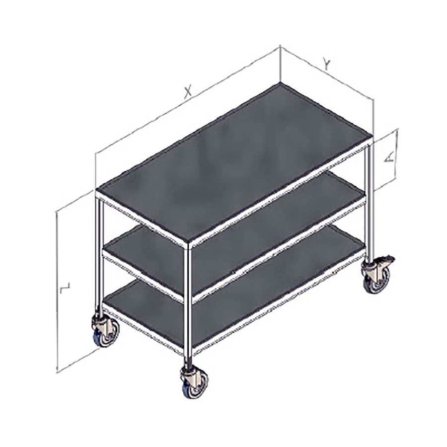 Ergolift serveringsvogn, 1055x530x850mm.